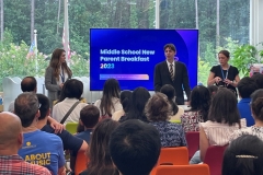 In August, the FSA administration invites new Mustang families to a morning orientation to about  school programs and offerings of the Mustang Support Organization.  The Msutang Support Organization works with the heads of school to provide a selection of brunch foods and beverages to make this an especially warm welcome!